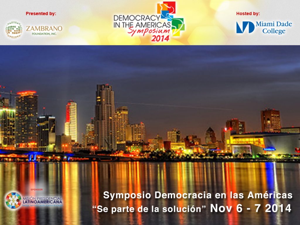 La Misión Presidencial Latinoamericana patrocina el simposio “Democracia en las Américas”, un encuentro de líderes empresariales y comunitarios, educadores, estudiantes e innovadores sociales. Durante el evento, que se llevará a cabo el 6 y 7 de noviembre, se compartirán ideas y se discutirán las mejores propuestas para aportar soluciones, a largo plazo, a los problemas que enfrentan los países que luchan por mantener democracias en las Américas y en el mundo. Entre los conferencias del simposio figuran Vinicio Cerezo y Luis Alberto Lacalle.