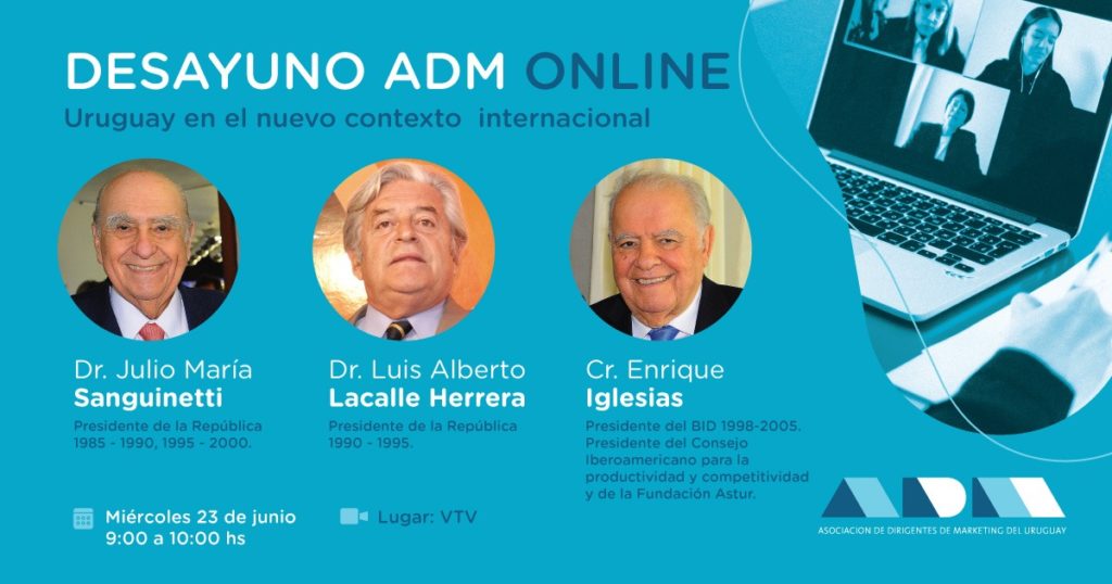 Los expresidentes del Uruguay, Julio María Sanguinetti y Luis Alberto Lacalle Herrera y el expresidente del BID, Cr. Enrique iglesias disertaron el miércoles 23 de junio en un evento organizado por la Asociación de Dirigentes de Marketing sobre el tema “URUGUAY EN EL NUEVO CONTEXTO INTERNACIONAL.”