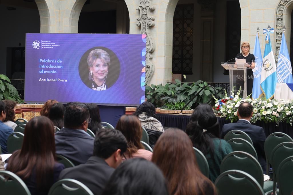 Luego intervino el director de UNESCO en Guatemala, Patricio Zambrano Restrepo, quien recordó que los conceptos de desinformación, libertad de expresión y democracia no son independientes entre sí. “Estos tres pilares se sostienen mutuamente o se derrumban juntos. Vivimos una era de sobreabundancia de datos, pero eso no garantiza claridad. La manipulación deliberada de hechos, amplificada por algoritmos, se ha convertido en una amenaza estructural”.
