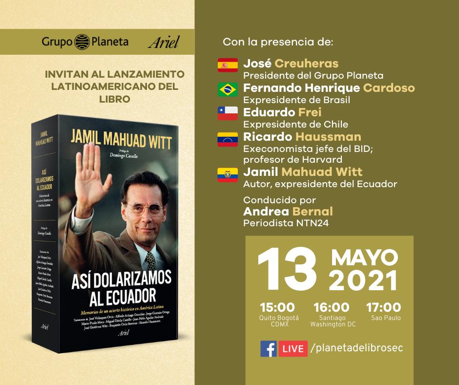 El expresidente de Ecuador, Jamil Mahuad presenta el 13 de mayo en conferencia virtual su libro ASI DOLARIZAMOS AL ECUADOR